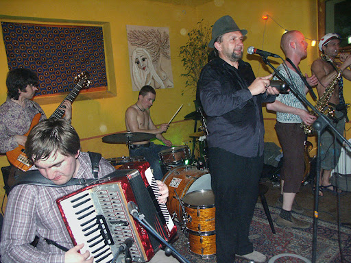 Ich glaube aber, dass die Echtesten drüben sind, nicht hier. Wer also echtes Balkanfeeling erleben will, muss nach Guca fahren, dort wo rund um die Uhr Hunderte von kleinen Bands spielen, wo Rotwein und Sliwowitz das Wasser ersetzen und ganze Ochsen am Spies gebraten werden und man nur 3-4 Stunden am Tag schläft, dort ist das Herz der Balkanmusik. Hier gibt es im besten Fall eine Balkanplatte im kroatischen Restaurant um die Ecke.